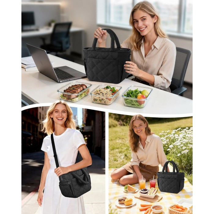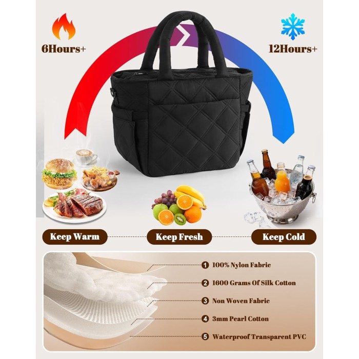- Stylish & durable: This lunch bag women features a simple yet fashionable design. The interior is filled with plenty of silk cotton and pearl cotton, making it softer and fluffier. The unique diamond-patterned reinforced quilting design makes the bag more sturdy and durable, less prone to deformation